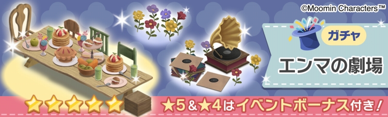 チケットイベント「エンマの劇場」でイベントボーナスが得られるデコが出現する期間限定ガチャ