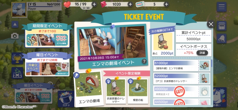 Tokyo hammockは、アイテム探しゲーム『ムーミン谷の探しもの』において、 配信後初となるオリジナルステージ付きイベント『エンマの劇場』を11月1日まで開催する。