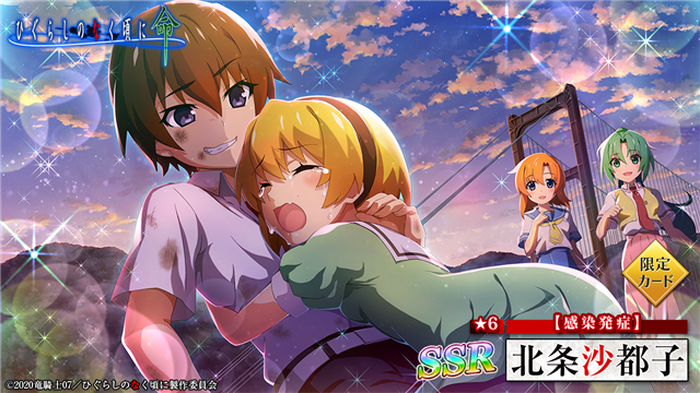 人気の「オヤシロ感染ガチャ」が開催!新たに新限定カード「【感染発症】北条沙都子」が登場した。とても強力なカードとなっているので、ぜひGETしよう!