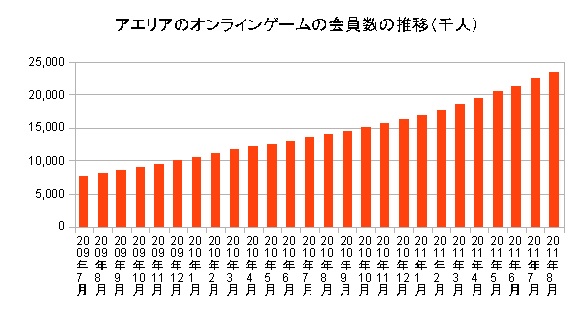 2011年1月から8月までの累計の売上高は、前年同月比30.4%増の33億9300万円となった。会員数については、前月比97万7000人増の234万6700万人tなった。