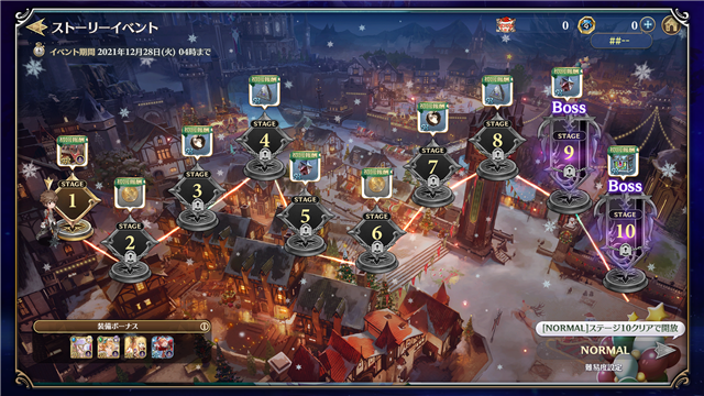 全20ステージのストーリーを攻略し、 貯めたポイントでイベント景品をもらおう!サンタさんを信じるキュイのかわいらしいストーリーにも注目!