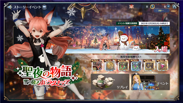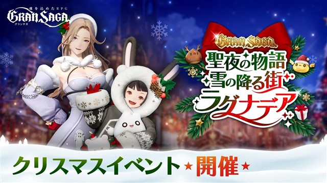ラグナデアにクリスマスがやってきた!『聖夜の物語 雪の降る街ラグナデア』を開催!イベント衣装をはじめ、イベントストーリーやクリスマス限定グランウェポンなど、この冬を最大限楽しめるハッピーなイベントとなる。