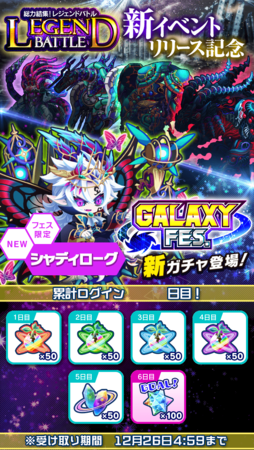 12月15日(水)12:00から1月1日(土)14:59の期間において、 新たに「ギャラクシーフェス」が登場いたします。