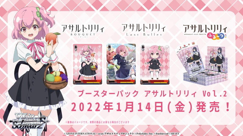 2022年1月14日にブースターパック『アサルトリリィVol.2』が発売する。新規描き下ろしイラストや出演キャストによる箔押しサインカードも収録される。