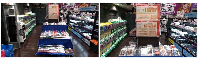 4Fブシロードフロアのフェア特設コーナーの棚には『コミックブシロードWEB』オープン1周年を記念した新商品が並ぶほか、 過去に販売された商品やコミックス等多くの商品を展開している。