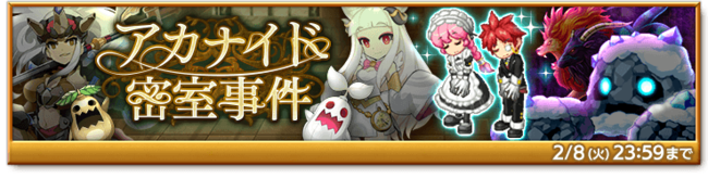 期間中、 「アカナイド密室事件」を開催する。吹雪を凌ぐために訪れた「アカナイド邸」で事件発生!真相を解き明かし、 限定アバター「アカナイド邸 メイド服/執事服」シリーズなどをゲットしよう!