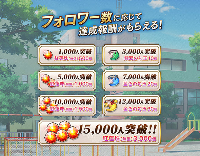 Twitterのフォロワー数に応じて、 報酬をプレゼント!