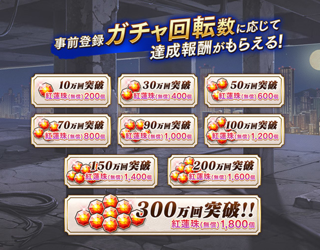 事前登録ガチャの総回転数に応じて、 報酬をプレゼント!