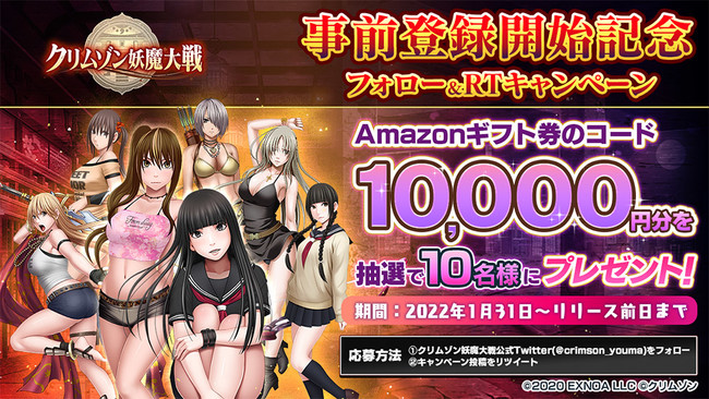『クリムゾン妖魔大戦』の事前登録開始を記念して、 Amazonギフト券コードが抽選であたるリツイートキャンペーンを開催。