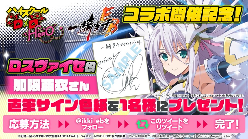 コラボイベントに登場する「姫島朱乃」役の伊藤静さん、「ロスヴァイセ」役の加隈亜衣さんの直筆サイン色紙を抽選でプレゼントするキャンペーンを公式ツイッターで開催!