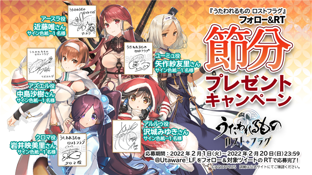 ●『うたわれるもの ロストフラグ』フォロー&RT 節分プレゼントキャンペーン開催!