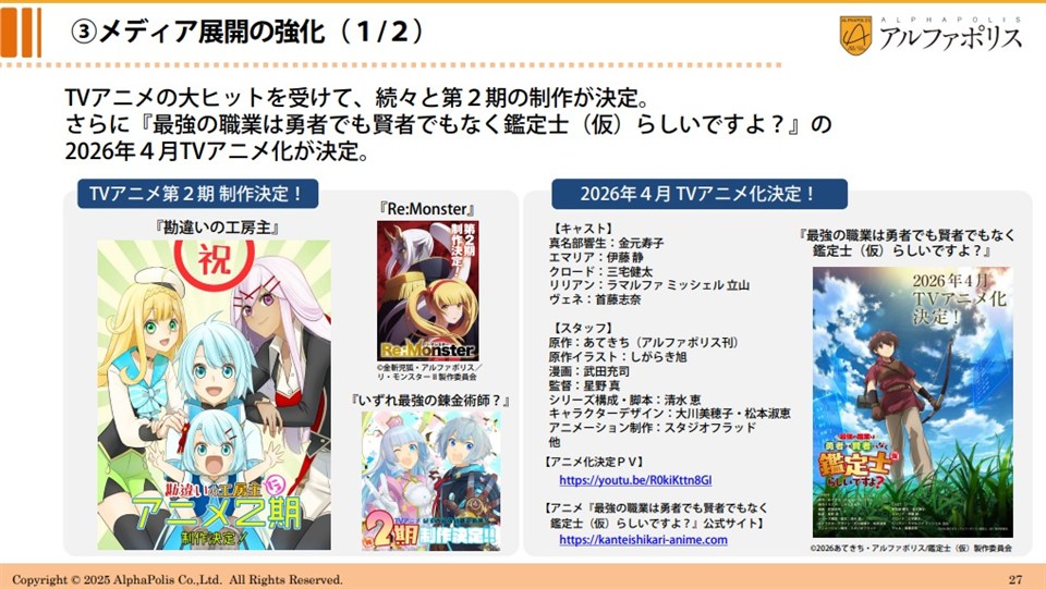 ただし、リリース前の展開からコアなユーザーを獲得することができており、ゲーム内での課金率やARPU(客単価)、継続率などは他のタイトルと比較しても優秀な水準にあるそうだ。このため、今後は広告宣伝費を投下して新規ユーザーの獲得を図り、ユーザー数とともに売上拡大も狙っていく考えだ。