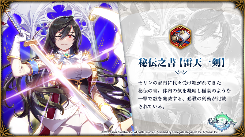 ■期間限定ピックアップ召喚に★5 英雄「セリン」と古代遺物「秘伝之書【雷天一剣】」が登場!
