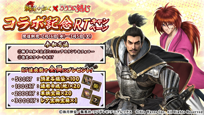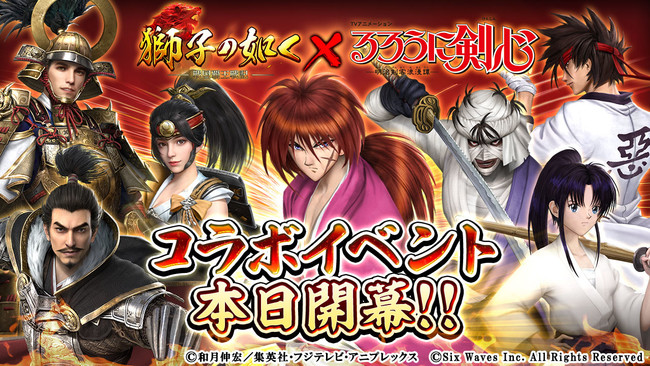 6wavesは、 2022年2月14日(月)より『獅子の如く ~戦国覇王戦記~』にて、 TVアニメ『るろうに剣心 -明治剣客浪漫譚-』とのコラボイベントを実施する。