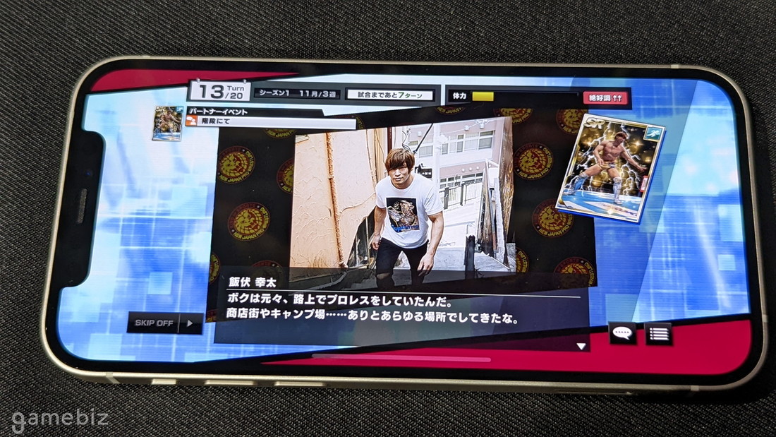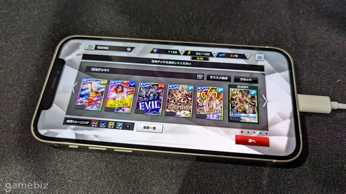 今回の試遊では、『道場』機能のシーズン1を体験することができた。今回の試遊では、鷹木信悟選手を選択した。育成開始時にトレーニングをサポートしてくれるサポートカードをセットしてから始める。