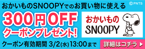 新しくグランドOPENする「おかいものSNOOPY Yahoo!ショッピング店」で使えるお得なクーポンをプレゼント中!詳細は「アプリのお知らせ」をチェック。