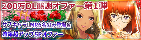 200万DLを感謝して3種類のスペシャルオファー(ガチャ)を実施いたします。全てのオファーにてバトルチケット(アプリ内アイテム)が通常の 2倍 手に入ります。