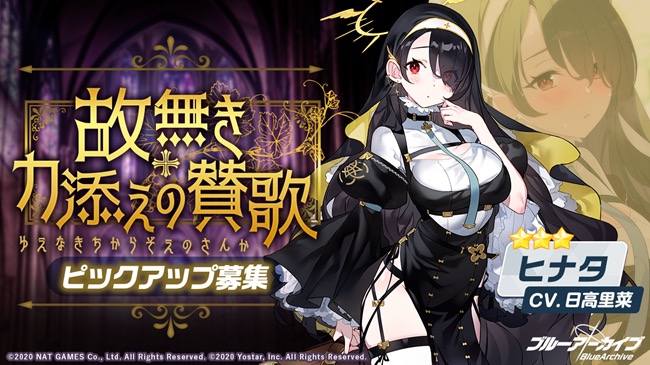 Yostarは、2月24日、『ブルーアーカイブ -Blue Archive-』の期間限定イベント「どたばたシスターと古書館の魔術師」開催や★3 新生徒「ウイ」と「ヒナタ」のピック アップ募集を実施した。