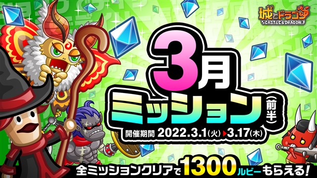 3 月ミッション前半・後半を20個達成する:50ルビー
