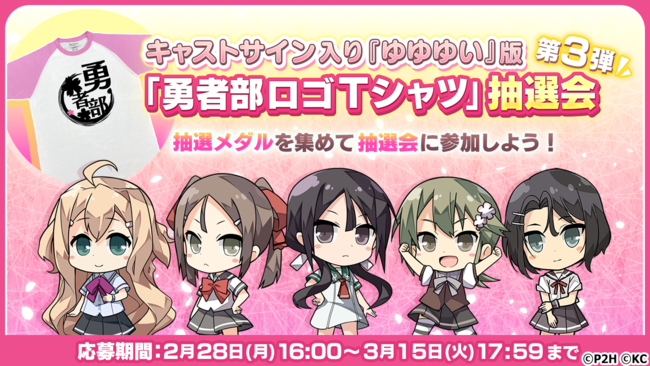 ※「抽選メダル」を所持していても応募フォームより応募をしない限り、 キャストサイン入り『ゆゆゆい』版「勇者部ロゴTシャツ」の抽選には参加出来ません