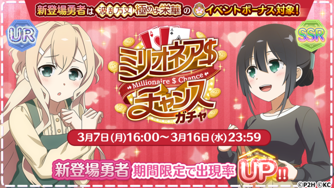 KADOKAWAとオルトプラス<3672>は、 『結城友奈は勇者である 花結いのきらめき』において、 「ミリオネア$チャンスガチャ」を開始した。