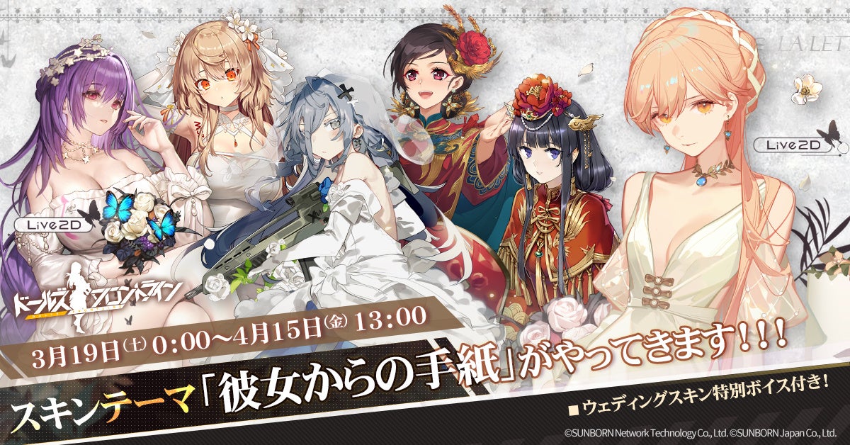 サンボーンジャパンは、『ドールズフロントライン(以下、「ドルフロ」)』において、3月18日より、過去の人気イベント「写真館の謎」を復刻開催することを発表した。また、春の訪れを祝う華やかな新作ウェディングスキンや近日開催のゲーム内情報に関しても合わせてお知らせいたします。