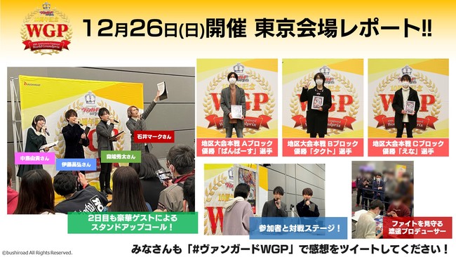 ブシロード<7803>は、「10周年記念 ヴァンガード WGP」地区大会の来場者数が合計約2000人を突破したことを発表した。