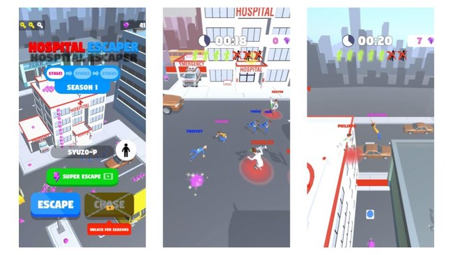 「Hospital Escaper」は、注射嫌いな主人公キャラクターを操作してパルクールを駆使しながら、医者から逃げる鬼ごっこアクションゲーム。ステージ上に配置された様々な建物やギミックを使いながら、制限時間まで医者から逃げ続けることが目的のゲームとなっている。