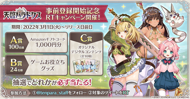 EXNOAとKMSは、3月18日、 新作3DタクティクスRPG『天啓パラドクス』の事前登録者数が20万人を突破したことを発表。また、コラボ動画を記念したキャンペーンが開始した。