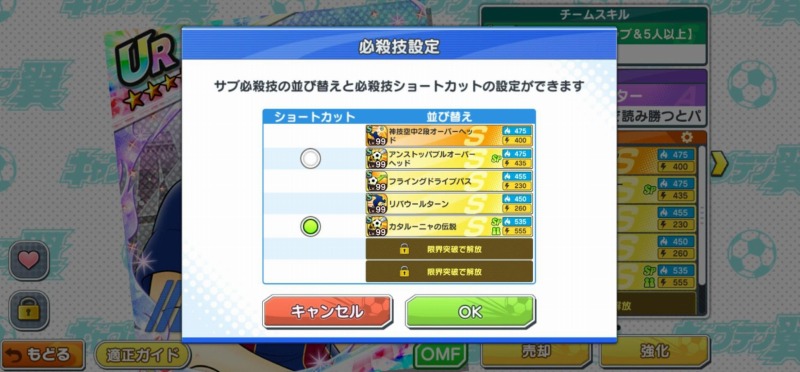さらに、 「限界突破」をすることで、 「必殺技スロット解放」「能力上限突破の最大値増加」に加えて「パラメータ増加」も追加になる。