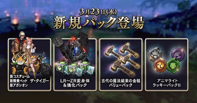 また、 虎をモチーフにした武器コスチュームや騎乗ペットなどの新商品を多数追加した。