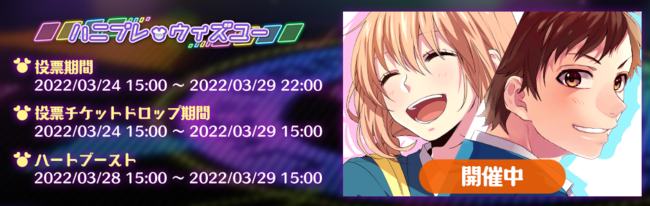 ※ライブのクリア報酬で獲得できる「投票チケット」は、 2022年3月29日(火)15:00まで獲得することができます。