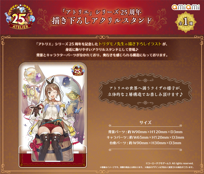 大網は、自社が運営するホビーショップ「あみあみ秋葉原ラジオ会館店」、「あみあみオンラインショップ」にて、『「アトリエ」シリーズ25周年 ポップアップショップ in amiami 』を開催することを決定した。