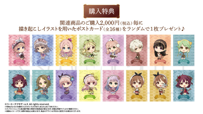関連商品の購入2,000円(税込)毎に描き起こしイラストを用いたポストカード(全16種)をランダムで1枚プレゼント。