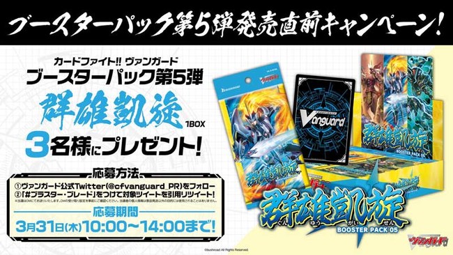 ブシロード<7803>は、『カードファイト!! ヴァンガード』の最新商品となるブースターパック第5弾「群雄凱旋」を、4月1日(金)に発売する。