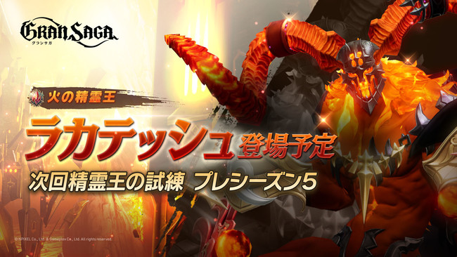 ギルド間でボスモンスター討伐時のポイントを競う、 ギルド競争戦「精霊王の試練」プレシーズン5の開催が決定いたしました!次回は火属性のボスと、 火の精霊王ラカテッシュが登場予定となっております!