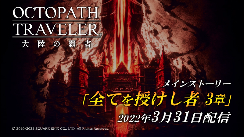 スクウェア・エニックスは、『OCTOPATH TRAVELER(オクトパストラベラー)大陸の覇者』において、本日 3 月 31 日(木)17:00 頃より、新たなメインストーリー「全てを授
