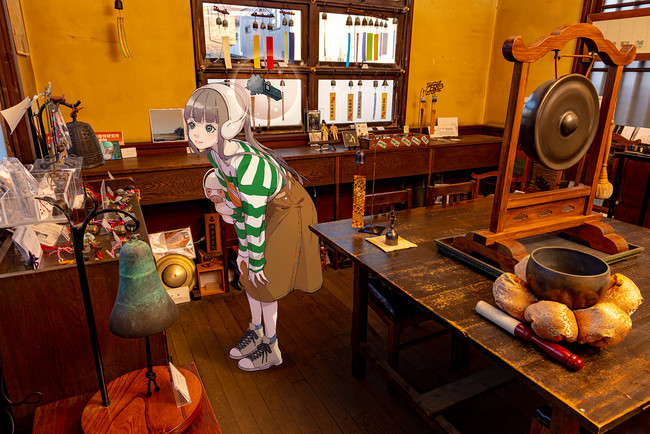 柏木美術鋳物研究所の風鈴やおりんは、 砂張(銅と錫の合金)から製造しており、 他の金属で製造したものよりも余韻が長くなるのが特徴です。 柏木照之社長は「今の時代、 音は電子機器を通して聴くことが多くなってきているが、 身近な所で鳴物の心地よい生の音が楽しめるような機会を作り上げていきたい」と話します。 研究所では、 風鈴やおりん、 鐘などが置いてあり、 いつでも心地よい音色を聴くことができます。