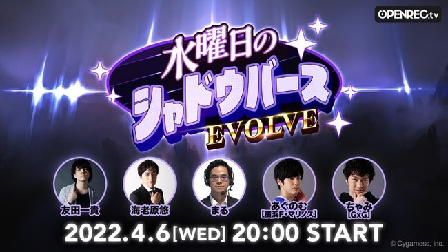 4月6日(水)20時より、 Shadowverse EVOLVE Channelにて配信。Shadowverse EVOLVE Channelの楽しみ方の紹介や、 出演者同士によるバトルも配信予定となっている。