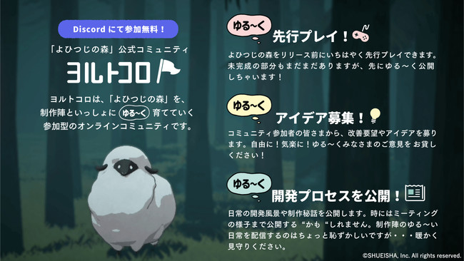 よひつじの森は、 Discordサーバー上のユーザー参加型コミュニティ「ヨルトコロ」にて、 クローズドβ版を配信し、 約1300名のコミュニティ参加者と共にアプリの開発を実施してきました。