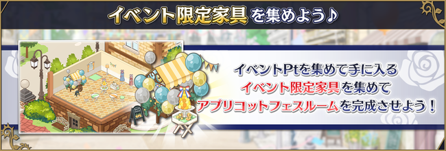 本イベントでは制服姿のシャルポー&グラースが描かれた、 イベントタイトルロゴ入りラグが登場!アプリコット家具とイベント限定ラグがどちらも手に入るのはこのイベントだけ!ぜひゲットしてくださいね!