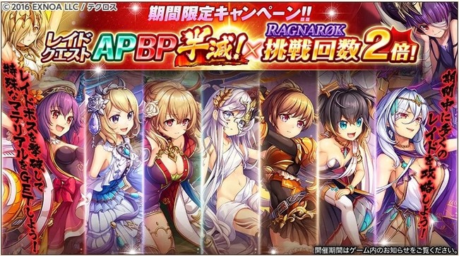 ▼ レイドクエスト消費AP BP半減 ! RAGNAROK 挑戦回数2倍 !
