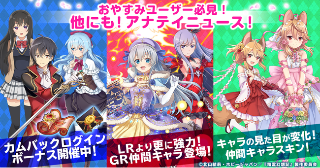 CTWは、 ゲームサービス「G123」にて配信中のHTML5ゲーム『精霊幻想記アナザーテイル』(以下、 アナテイ)について、 「アナテイ、 春の3大スクープ」を発表した。
