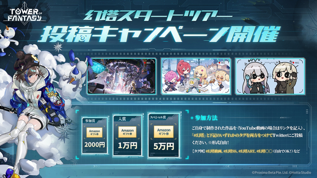 『幻塔』公式Twitter(@ToF_JP)では、 クローズドβテスト実施を記念して「スタートツアー投稿キャンペーン」を開催する。『幻塔』に対する想いを込めたオリジナル作品を投稿しよう。