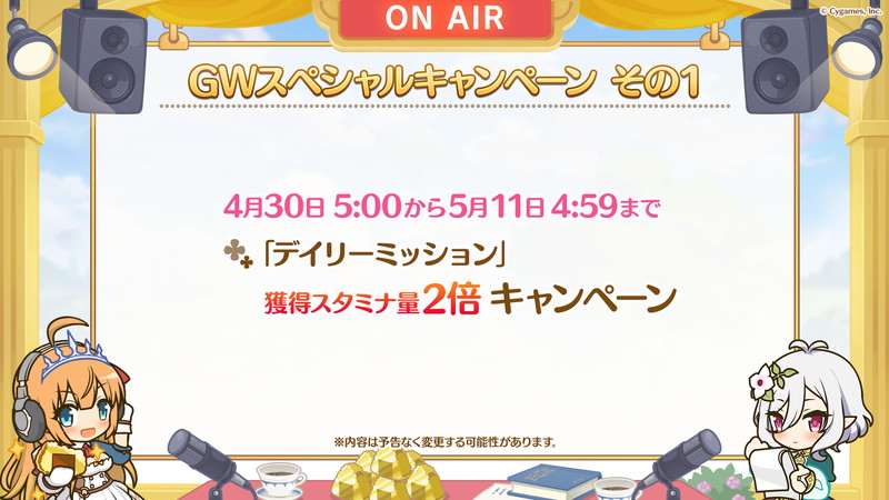 ゴールデンウィークに『プリンセスコネクト!Re:Dive』をより楽しめるキャンペーンを開催する。