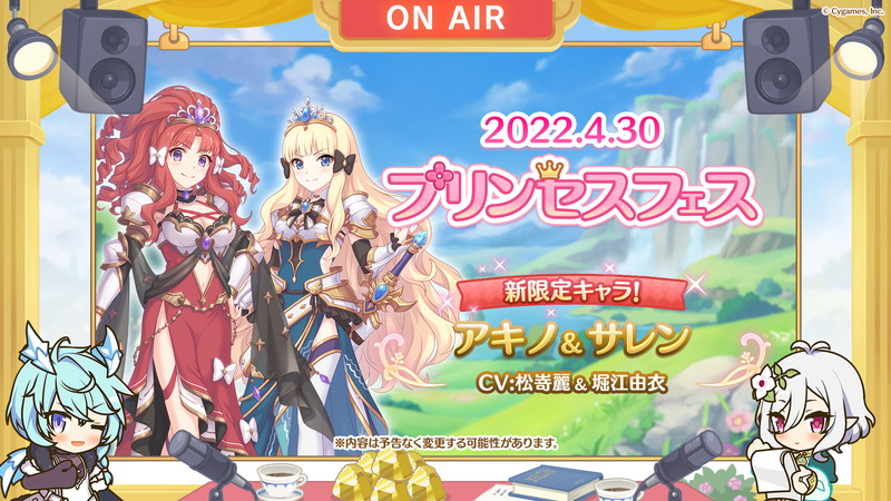 4月30日から「プリンセスフェスガチャ」を開催する。新たなプリンセスフェス限定キャラとして「アキノ&サレン」が登場する。