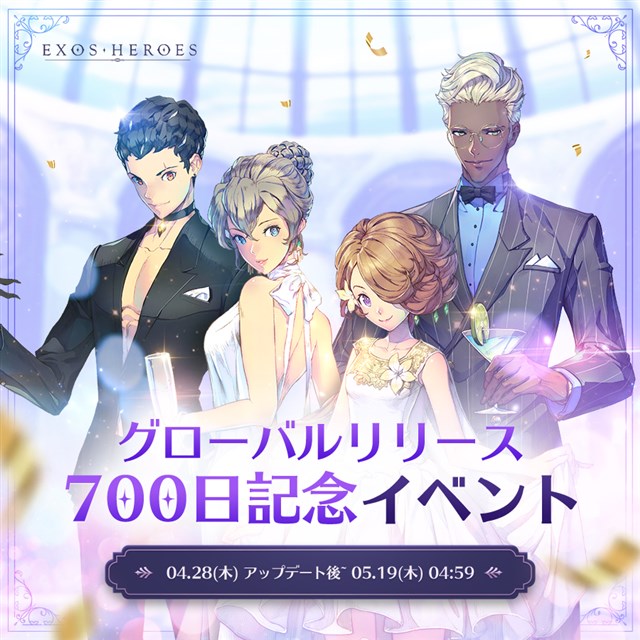 LINE Gamesは、『EXOS HEROES(エグゾスヒーローズ)』において、4月28日より、新規コアレイド「砂の時間」を公開した。また、新規フェイトコア「貴公子_バラカ」と専用装備の登場、グローバルリリース700日記念を記念したイベントを開催している。さらに、キャラクターバランスの調整や、利便性の改善など様々なコンテンツアップデートが行われた他にLINE GamesのPCプラットフォーム「FLOOR」でもエグゾスヒーローズが楽しめるようになった。