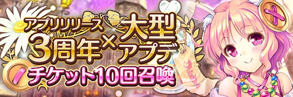 アプリリリース3周年&大型アップデートを記念した、毎日『アプリ3周年10回召喚チケット』プレゼントが第二弾期間に突入した。