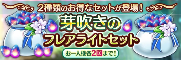 フレアライトがお得に手に入る2種類の『芽吹きのフレアライトセット』が登場した。期間限定販売となっている。