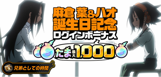 Studio Zは、『SHAMAN KING ふんばりクロニクル(通称:ふんクロ)』で、主人公の麻倉 葉と大人気キャラのハオの誕生日を記念して、 「[思いひとつ] 麻倉 葉」と「[未来王] ハオ」をピックアップした双葉ガチャを開催する。